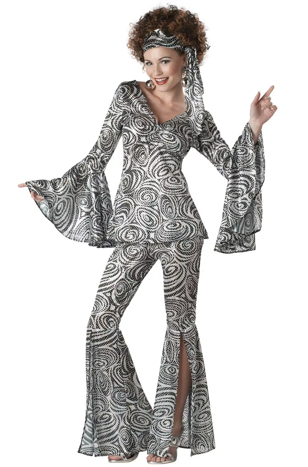 Who’s that lady? It’s a groovy lady! Get ready to boogie on down the dance floor in this sparkling disco costume! This costume features split flare pants so nothing gets in the way of your dancing feet!