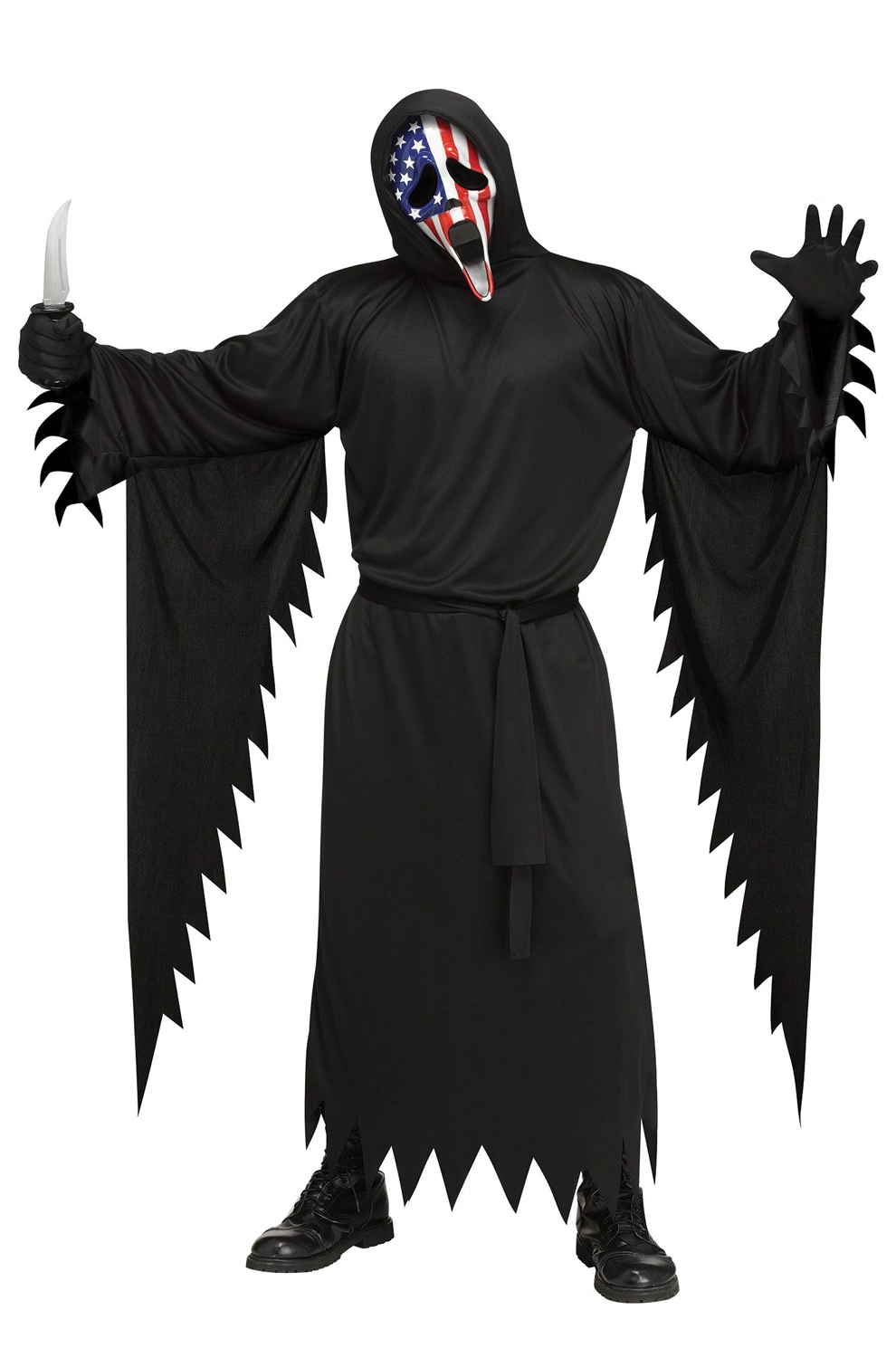 Bring a touch of patriotism to Halloween or bring some screams to Halloween with this fun twist on Ghost Face! This costume takes the classic slasher from Scream and adds a bit of red, white, and blue. No matter what holiday you wear this costume for, everyone is sure to love it!