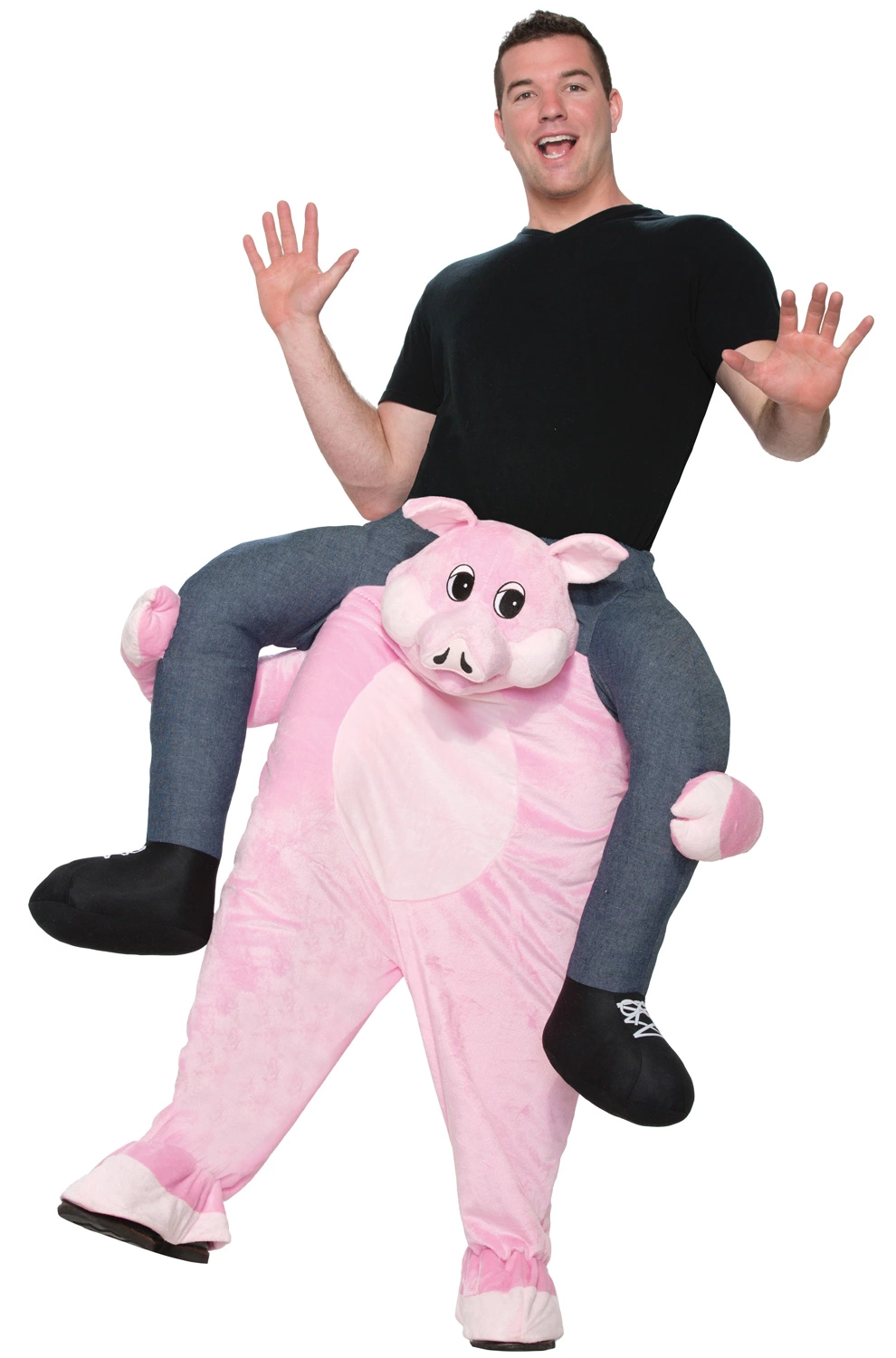 Give piggy back riding a literal meaning with this Ride-On Piggy Back Ride costume for adults. This fun costume includes a stuffed pig with faux dangling legs so that you can ride on the back of this funny piglet.